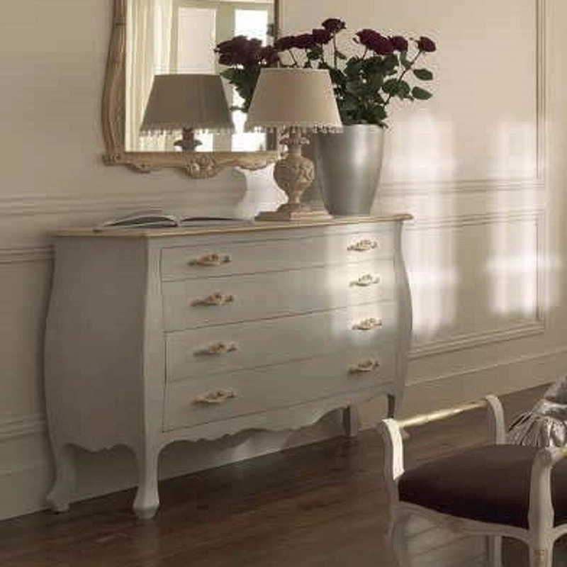 Комод с изогнутыми ножками выполнен в традиционном стиле. Он оснащен четырьмя выдвижными ящиками.