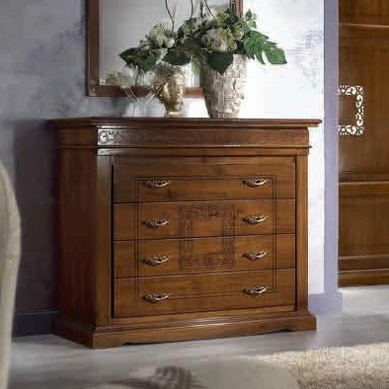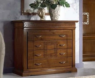 Этот комод выполнен в традиционном стиле. Он оснащен четырьмя выдвижными ящиками. Фасады украшены изысканным орнаментом.