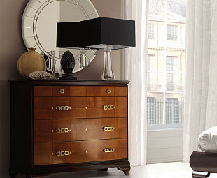 Элегантный комод, выполненный в классическом стиле, в котором присутствует гармоничность, изысканность и уникальность. Нежные тона мебели прекрасно сочетаются с яркими элементами в виде элегантных ручек. Мебель покрыта высококачественным лаком, который защитит от старения, солнечного света и перепада температур. Мебель и отделка сделана из исключительно высококачественных материалов. Нестандартная форма мебели подчеркивает и придает индивидуальность всему интерьеру дома. Мебель выполнена в цвете мока с вишней. Роскошный итальянский комод дополнит интерьер любого самого изысканного дома.