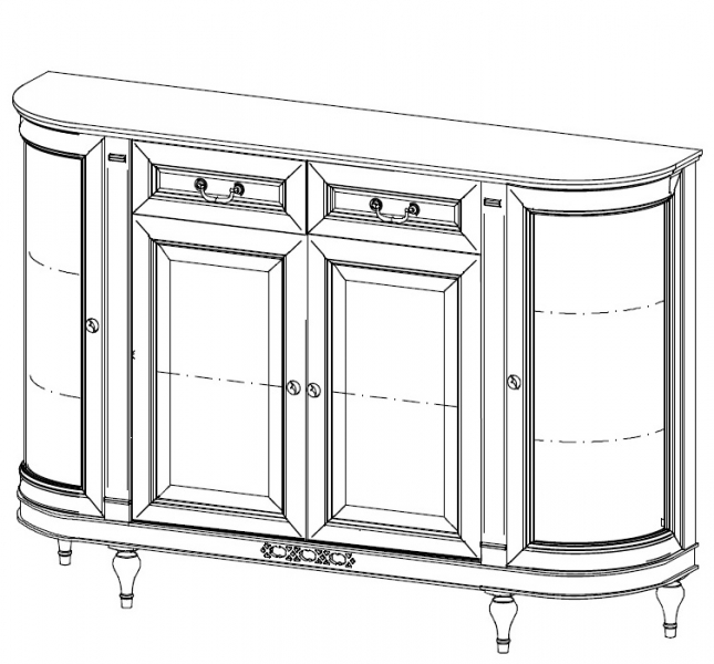 Комод на ножках Florenzia Taranko производится в нескольких модификациях: трехдверный, двухдверный и четырехдверный, с полукруглыми боковыми дверями. Корпус и фасадные панели изготовлены из МДФ высокого качества, покрытого шпоном. Ножки комода сделаны из массива бука, рамка - из массива ольхи.