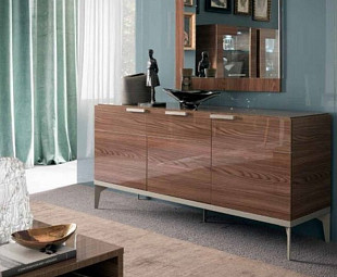 Комод с дверцами и ящиком Serena станет элегантным дополнением интерьера в стиле модерн. Отделка шпоном дерева Кото в нежном цвете "Вяз ваниль" с глянцевыми поверхностями. Три распашные двери, скрывающие ниши для хранения и выдвижное отделение под мелкие принадлежности.
