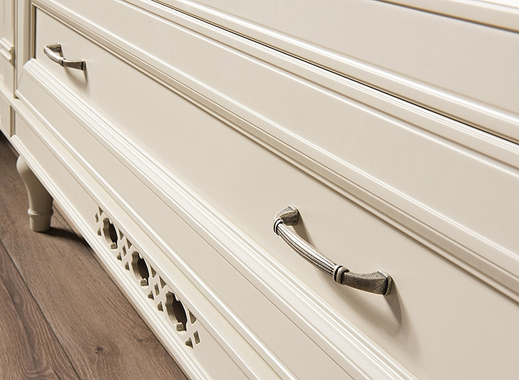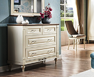 Комод с выдвижными ящиками Florenzia Taranko выполнен в классическом стиле. Четыре ящика, большого и среднего размеров, значительно увеличат место для хранения в комнате.