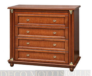 Комод с ящиками для спальни Валенсия выполнен в стиле классика. Изготовлен из экологически чистого массива. Мебель от белорусских производителей славится своим качеством и приемлемыми ценами во всем мире. Мебель коллекции Валенсия выполнена в цвете орех, и украшена высококачественной фурнитурой Hettich. Комод имеет четыри ящика.