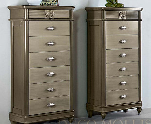 Комод серого цвета коллекции Бурбон сохранил все характеристики 18-19 веков, которые отражаются в роскошном интерьере спальни. Комод сделан в классическом стиле из высококачественного массива дерева. Комод выполнен в серо-бежевом патинированном цвете, что гармонично сочетается со специально подобранными элементами декора. Комод Бурбон интерпретирует вкус и потребности тех, кто любит деревянную мебель, поэтому каждый элемент – это подлинная составляющая и настоящее произведение искусства для вашего дома.