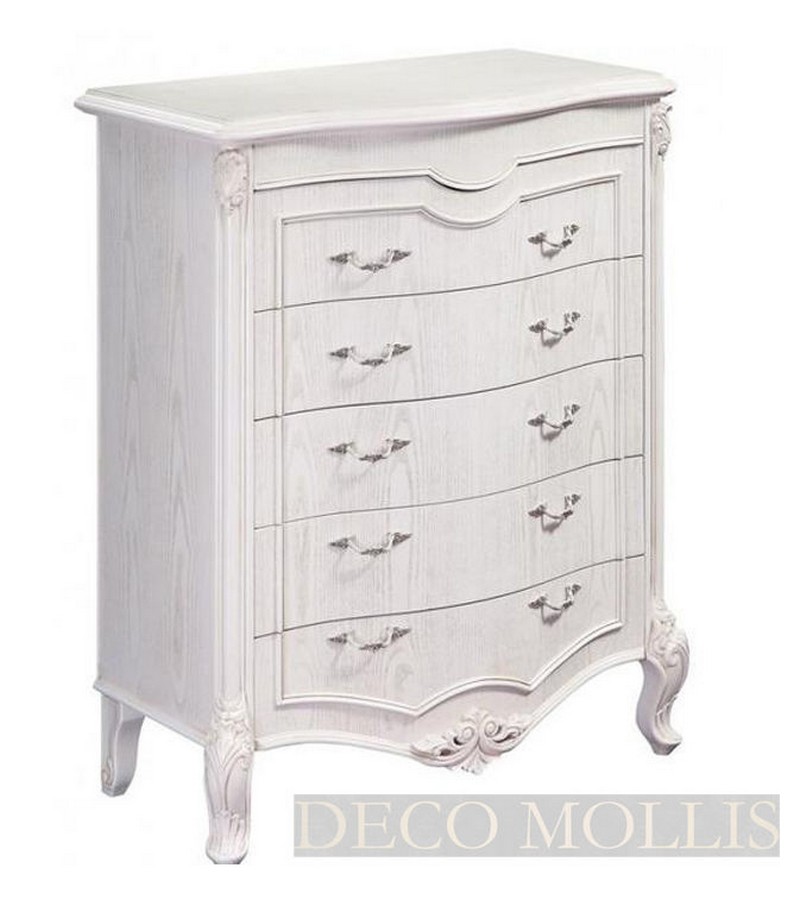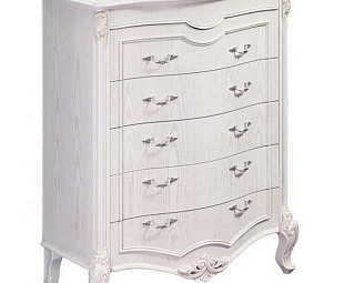 Комод Сarpenter 236 white. Классический комод имеет пять широких выдвижных ящика для хранения вещей. Комод сделан из массива дерева в отделке белого цвета. Комод украшен ручной лепкой и резьбой. Стильный и вместительный комод дополнит интерьер вашего дома.