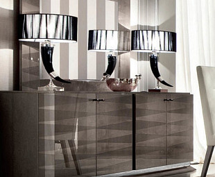 Комод в гостиную с дверцами Monaco. Буфет выполнен в современном стиле, лучшими итальянскими мастерами и дизайнерами, изготовлен из высококачественного МДФ с лакированным покрытием в цвете капучино. Имеет четыри двери, внутри оборудован выдвижным ящиком для хранения обеденных приборов и полками. Функционален, удобен, элегантен и красив
