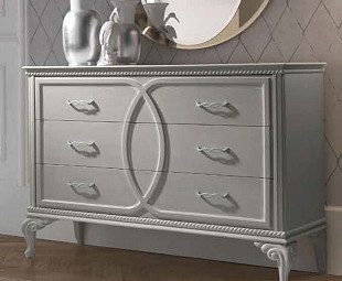 Очаровательный комод Queen Elizabethy представляет классический стиль античными изгибами ножек и великолепной резьбой, украшающей фасады вкупе с причудливыми рельефами. Модель изготовлена из натурального дерева и располагает тремя вместительными ящиками, дополненными изящной витой фурнитурой.