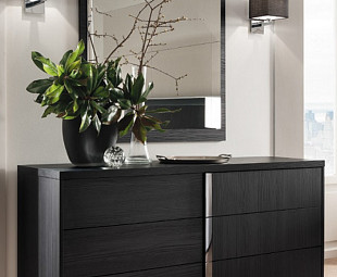 Большой вместительный комод ETNA с шестью выдвижными ящиками - незаменимый атрибут спальной комнаты. Удобная система хранения вещей сочетается с эффектным ультрамодным дизайном, а глянцевая отделка фасада выгодно оттеняет богатую текстуру натурального дерева.