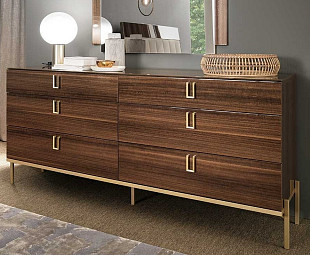 Широкий комод Mid Century можно сравнить с персонажем, обладающим брутальной внешностью и глубоким внутренним содержанием. Именно эти аспекты делают модель в равной степени как эстетически притягательной, так и функциональной. Шесть больших выдвижных ящиков оснащены системой бесшумного закрывания. В качестве декоративной отделки использована лаконичная фурнитура в контрастном цвете.
