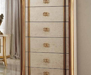 Комод высокий с ящиками Melodia фабрики Arredo Classic. Комод выполнен в классическом стиле лучшими итальянскими мастерами и дизайнерами. Комод сделан из высококачественного МДФ в цвете слоновая кость с золотом. Комод имеет шесть выдвижных ящиков.