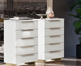 Лак, стекло с золотым напылением, ручки - сатинированный и металлический алюминий цвета шампань.