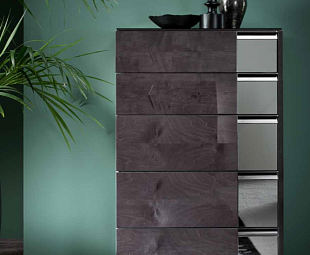 Комод высокий узкий Heritage не займет много пространства в комнате, при этом белье прекрасно расположится в пяти выдвижных ящиках. Отделка шпоном дерева Кото с декоративными элементами в виде зеркальных вставок на фасаде. Роскошное дополнение к спальному гарнитуру.