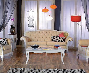 Комплект мягкой мебели Capri. Дизайн мягкой мебели выполнен в классическом стиле, но адоптирован к современному образу жизни. Мягкая мебель напоминает настоящее произведение искусства в области мебели. Вся мебель коллекции Capri сделана из высококачественного массива дерева и дополнена шпоном. В обработке мебели используются специальные методы, которые придают ей исторический характер. Мягкая мебель выполнена в белом патинированном цвете. Обивка выполнена из ткани. Элементы ручной работы, украшающие мягкую мебель, являются результатом работы профессиональных дизайнеров и мастеров. По этой причине, каждый элемент мягкой мебели является уникальным, что дает ощущение будто бы она выполнена по вашему индивидуальному заказу. Мягкая мебель коллекции Capri наполнит атмосферу вашего дома изысканностью, элегантностью и принадлежностью сразу к нескольким эпохам.