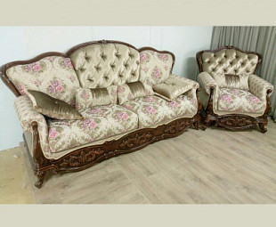 Диван трехместный и кресло в обивке 6-ой категории ткани. Возможны различные варианты обивки.