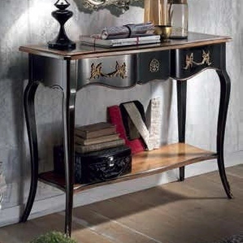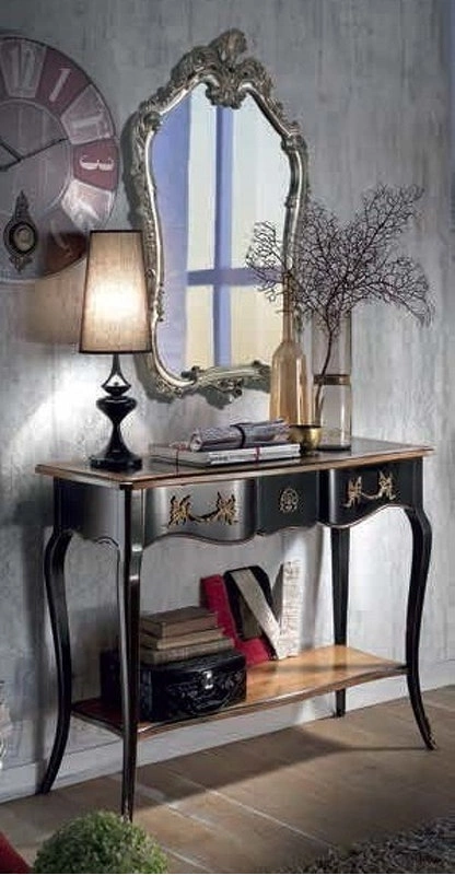 Эта консоль с изогнутыми ножками выполнена в традиционном стиле. Она оснащена одним выдвижным ящиком и открытой полкой.