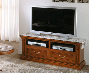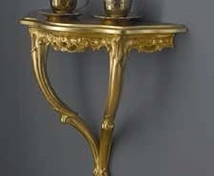Эта консоль на фигурном основании выполнена в традиционном стиле. Резные элементы подчеркивают её оригинальность. Она требует крепления к стене.