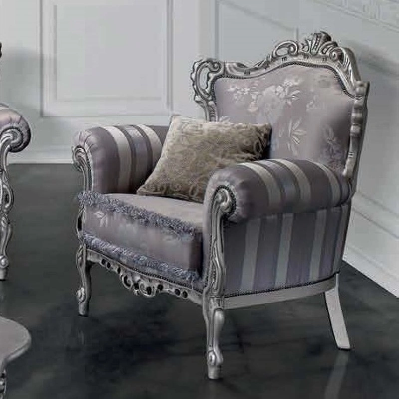 Это кресло на изогнутых ножках является образцом классического стиля. Фигурная спинка и основание украшены изысканной резьбой, что придает изделию особый шарм. Загнутые подлокотники не только удобны, но и подчеркивают оригинальность дизайна.