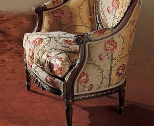 Шикарное мягкое кресло в классическом стиле овальной формы просто создано для солидных гостиных, обставленных с отменным вкусом. Выдержанные цвета обивки из дорогих тканей. Плавный переход от подлокотников к спинке, украшенной цветами и растительным орнаментом. Резные элементы также находятся на церге и ножках, которые сделаны в виде конуса балюстрадной формы. Использованы ценные породы дерева, которые специально обработаны под старину с нанесением золота. Материалы и отделка может быть выбрана индивидуально.