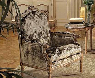 Большое мягкое кресло в классическом стиле по мотивам салонов Людовика XVI идеально подойдет для Вашей уникальной, дорогой гостиной. Изящный дизайн декора в виде растительного орнамента и переплетенной ленты с эффектом старения прекрасно смотрится на всем деревянном фасаде. Сверху нанесено покрытие из сусального золота, которое предает мебели дорогостоящий и винтажный вид. Ножки прямые конусообразной формы с вертикальными канавками. Обивка из тканей Премиум-класса. Подлокотники правно переходят в спинку и загибаются спереди в изящный завиток. Материалы и отделку можно подобрать индивидуально.