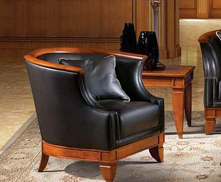 Роскошное кресло в классическом стиле от известной итальянской фабрики элитной мебели. Большое, глубокое сиденье, просто созданное для покоя и комфорта. Плавные, чистые линии образуют полуовальную форму без отягощения излишним декором. Обивка может быть сделана как из тканей класса "люкс" с оригинальным орнаментом, так и из элитных сортов кожи различных цветов и текстур. Небольшие ножки-сабли создают особую устойчивость и надежность. Все материалы и декор могут быть подобраны индивидуально.