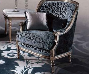 Шикарное мягкое кресло в классическом стиле от лучшей фабрики Италии по производству элитной, Премиальной мебели. Великолепные резные элементы в сочетании с декоративным золотым и серебряным покрытием создают настоящее произведения искусства, от которого невозможно оторваться. Овальная форма спинки плавно соединена с сиденьем. Ножки и царги украшены уникальным растительным орнаментом. Материалы и отделка могут быть подобраны индивидуально.