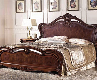 Кровать 180 Каролина. Кровать выполнена в классическом стиле из натурального МДФ, фасады оформлены декоративной резьбой. Кровать выполнена в цвете орех. Роскошная кровать добавит интерьеру вашего дома тепло и уют.