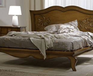 Элитная итальянская кровать коллекции Parigi. Кровать с высоким инкрустированным декор изголовьем без изножья. В цвете орех , сделана из массива клена с помощью современного оборудования и ручных этапов сборки.