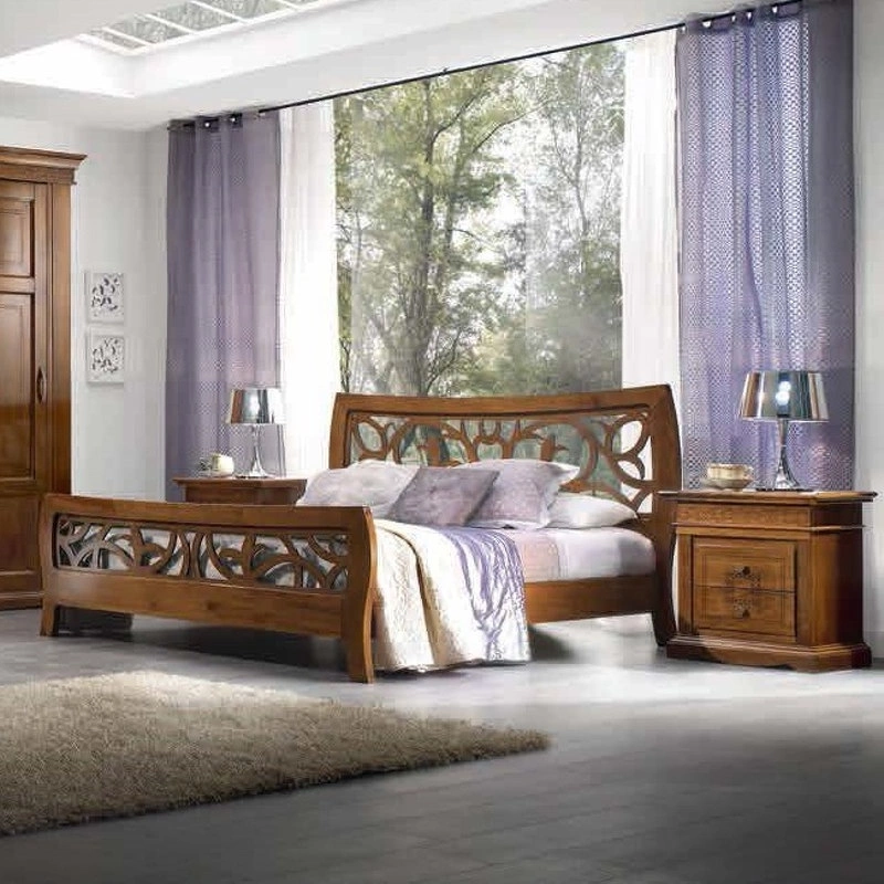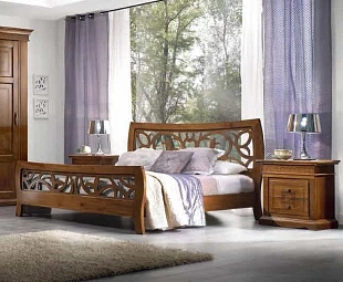 Кровать выполнена в традиционном стиле. Её изголовье и высокое изножье украшены резьбой. В комплект не входят основание для кровати, матрас и постельное бельё.