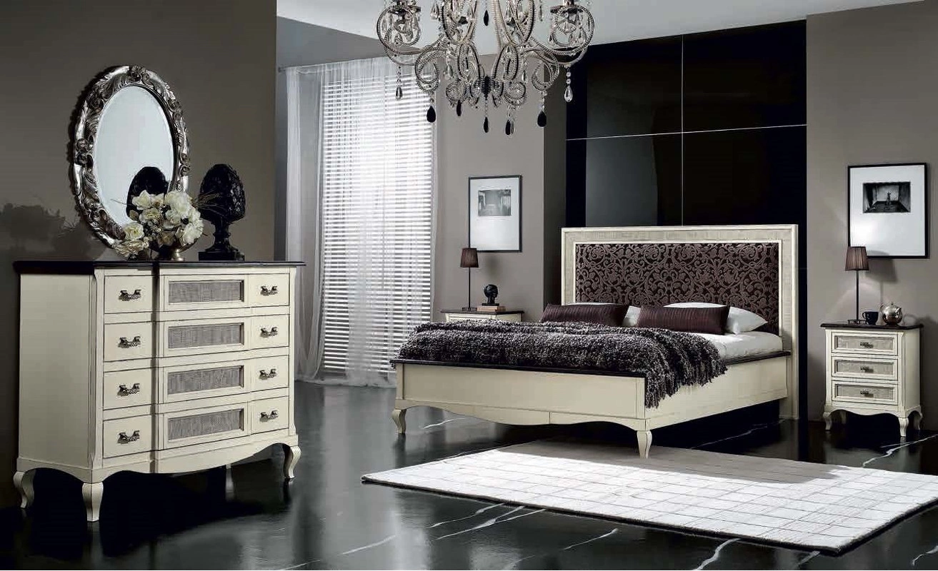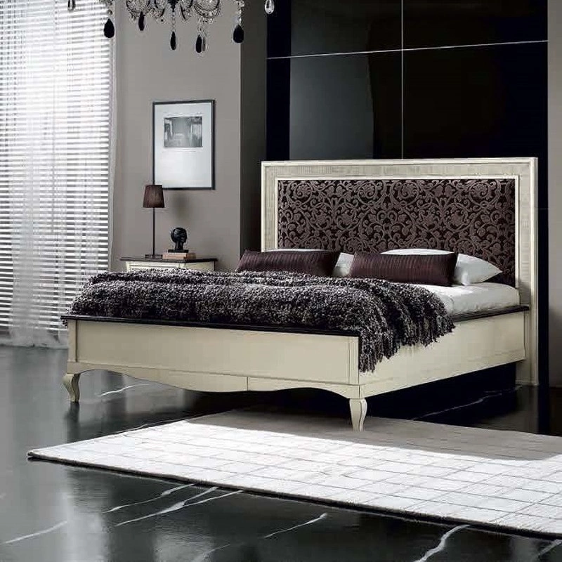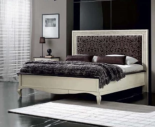 Кровать с изогнутыми ножками выполнена в традиционном стиле. Её изголовье обтянуто тканью. В комплект не входят основание для кровати, матрас и постельное бельё.