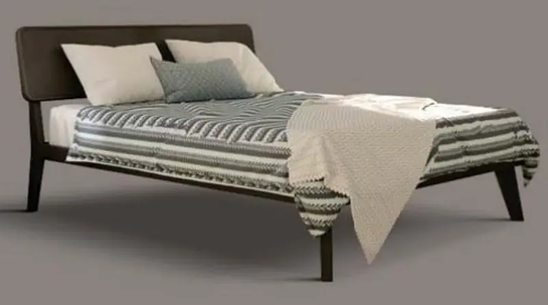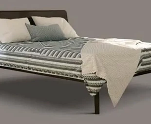Кровать в современном стиле с деревянным изголовьем.