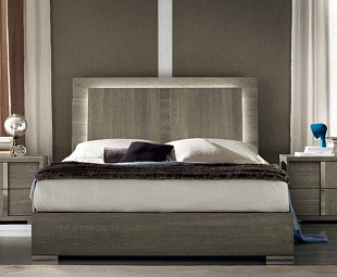 Кровать двухспальная современная Tivoli это роскошный предмет гарнитура от лучших фабрик Италии. Под основанием расположен ящик для белья, а спинка декорирована многослойными панелями, между которыми сделана подсветка. Грациозное изголовье выполнено в натуральном и телом цвете "Серый дуб" матовой текстуры.