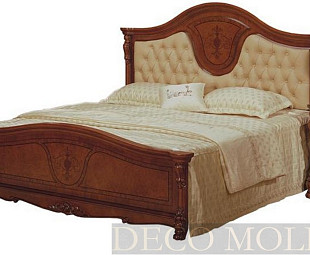 Кровать двуспальная 160 Angelina Carvelli. Кровать с изголовьем из кожи сделана из массива березы, в цвете орех.