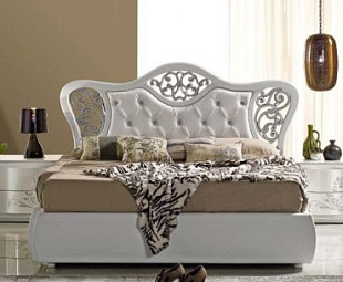 Кровать двуспальная с мягким изголовьем белая Hilton