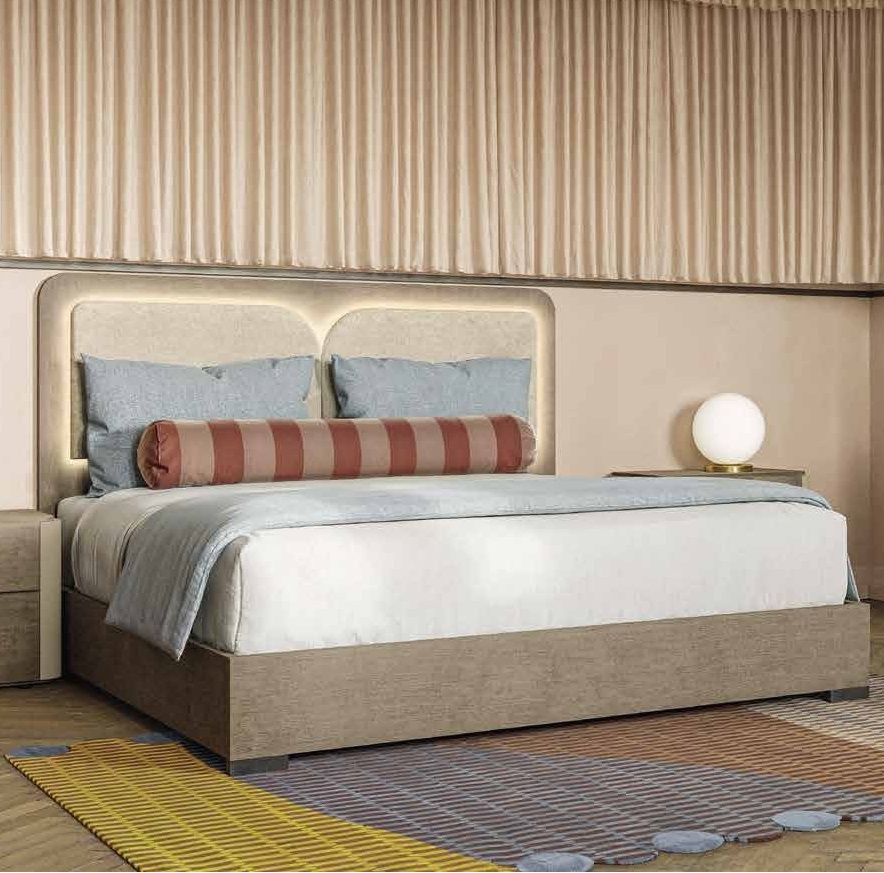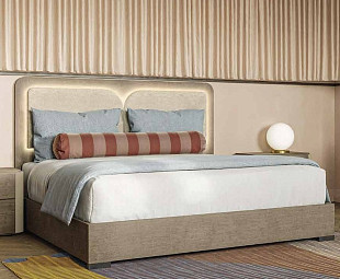 Кровать двуспальная с мягкой спинкой Rombi янтарная береза