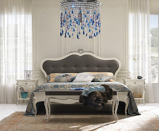 Кровать двуспальная в классическом стиле Venere. Масляное покрытие кровати усиливается деталями в серебряной отделке, благодаря которым