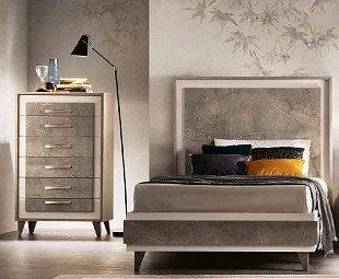 Светлый вяз, бежевые панели под мрамор, сатинированная бронза