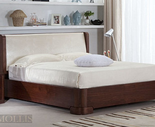 Кровать Прага. Двуспальная кровать выполнена в стиле модерн. Кровать имеет мягкое изголовье в обивке из эко-кожи белого цвета. Кровать сделана из шпона ореха и в отделке цвета орех. Роскошная кровать дополнит интерьер вашей спальни.
