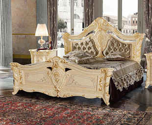 Кровать с пуговицами с бежевой или золотой экокожей Madame Royale сделана в классическом стиле с помощью консультаций лучших итальянских архитекторов. Кровать выполнена в окрасе под губку в бежевом цвете в специальной отделке под золото. Строгий, но приятный дизайн в классическом стиле, где присутствует утончённость вкуса, который отличает эту мебель и придаёт ей элегантность. Кровать сделана из высококачественного массива дерева и украшена золотой фольгой, так же украшает кровать продуманная с особым вниманием изящная резьба по дереву ручной работы. Итальянская кровать Madame Royale наполнит ваш дом изысканностью, роскошью и уютом.