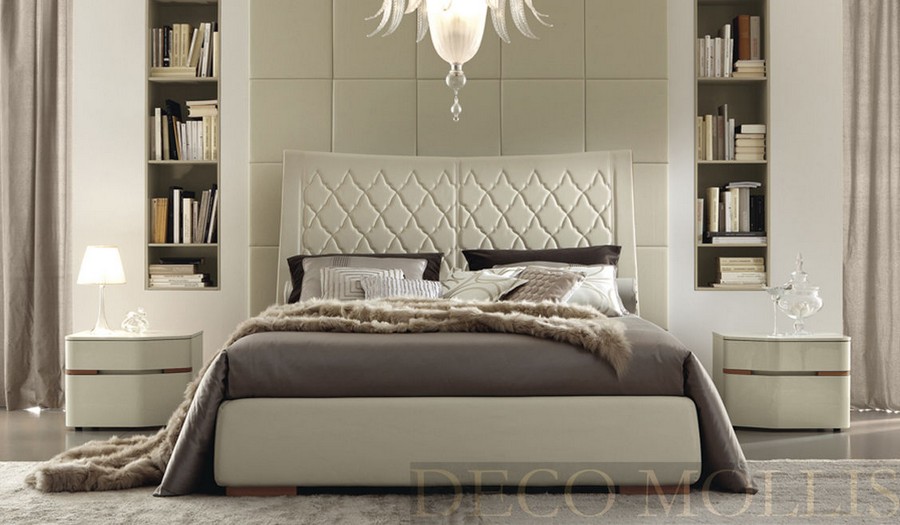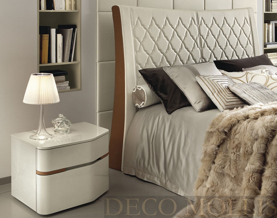 Кровать с кожаным изголовьем 180 Grace фабрики Alf. Выполнена в стиле модерн, лучшими итальянскими мастерами и дизайнерами, изготовлена из высококачественного МДФ в цвете слоновой кости с глянцевой поверхностью