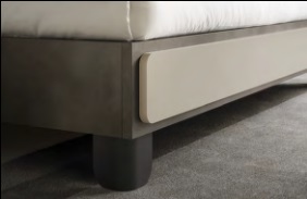 Кровать выпускается в двух вариантах: один с каркасом пудрового и антрацитового оттенков, другой — полностью обитый тканью.