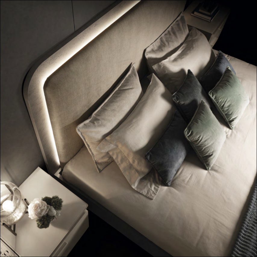 Мягкое изголовье дополнено встроенной светодиодной подсветкой.