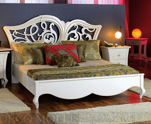 Кровать с резным изголовьем 180 Capri. Дизайн кровати выполнен в классическом стиле, но адоптирован к современному образу жизни. Кровать напоминает настоящее произведение искусства в области мебели. Вся мебель коллекции Capri сделана из высококачественного массива дерева и дополнена шпоном. В обработке мебели используются специальные методы, которые придают ей исторический характер. Кровать выполнена в белом патинированном цвете. Элементы ручной работы, украшающие кровать, являются результатом работы профессиональных дизайнеров и мастеров. По этой причине, каждый элемент кровати является уникальным, что дает ощущение будто бы мебель выполнена по вашему индивидуальному заказу. Кровать коллекции Capri наполнит атмосферу вашего дома изысканностью, элегантностью и принадлежностью сразу к нескольким эпохам.