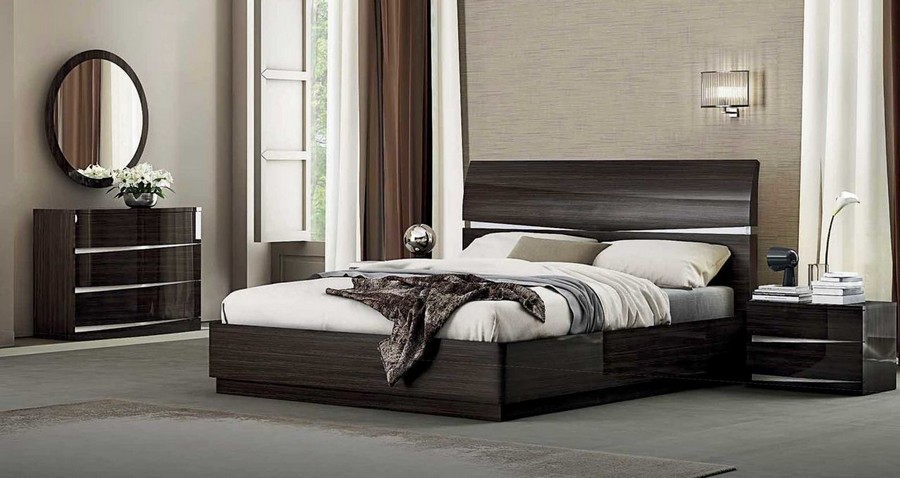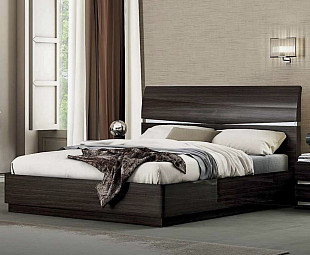 Кровать современная Милфорд гармонично подчеркнет роскошный и модный интерьер. Изготовлена из МДФ цвета "Венге" с лакированными фасадами, декорированными хромированными вставками.