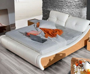 Двуспальная кровать выполненная в стиле модерн из шпона ясеня. Обивка кровати выполнена в белой коже это не только красиво но и приятно на ощупь. Кровать для стильных и требовательных покупателей. Ваша спальня будет выглядеть великолепно