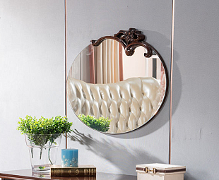 Круглое настенное зеркало Carpenter 309 в раме орехового оттенка украшено изящной резьбой. Производится китайской мебельной фабрикой из массива березы, покрытой шпоном анегри. Является прекрасным дополнением к туалетному столику или комоду.