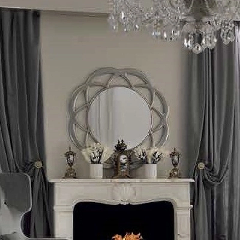 Интерьер дополняет круглое зеркало в скульптурной раме.