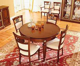 Круглый обеденный стол из массива Capri фабрики San Michele. Стол выполнен в классическом стиле, лучшими итальянскими мастерами и дизайнерами. Стол сделан из высококачественного массива и шпона вишни в цвете вишня. Украшен стол элементами из сусального золота.