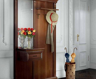 Панель с зеркалом и консолью, панель с крючками для одежды и полкой.