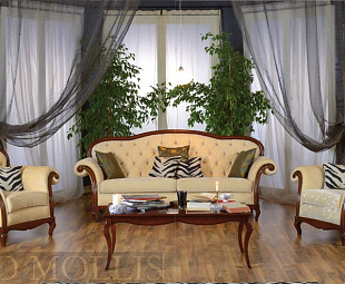 Мягкая мебель для гостиной Capri. Дизайн мягкой мебели выполнен в классическом стиле, но адоптирован к современному образу жизни. Мягкая мебель напоминает настоящее произведение искусства в области мебели. Вся мебель коллекции Capri сделана из высококачественного массива дерева и дополнена шпоном. В обработке мебели используются специальные методы, которые придают ей исторический характер. Мягкая мебель выполнена в цвете черешня патинированная. Обивка выполнена из ткани. Элементы ручной работы, украшающие мягкую мебель, являются результатом работы профессиональных дизайнеров и мастеров. По этой причине, каждый элемент мягкой мебели является уникальным, что дает ощущение будто бы она выполнена по вашему индивидуальному заказу. Мягкая мебель коллекции Capri наполнит атмосферу вашего дома изысканностью, элегантностью и принадлежностью сразу к нескольким эпохам.