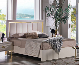 Декоративные металлический пластины цвета сатинированного золота, стеганная отделка подлокотников.